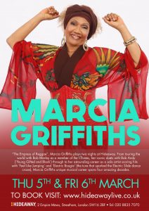 “The Empress of Reggae”, Marcia Griffiths plays two nights at Hideaway! From touring the world with Bob Marley as a member of the I-Threes, her…