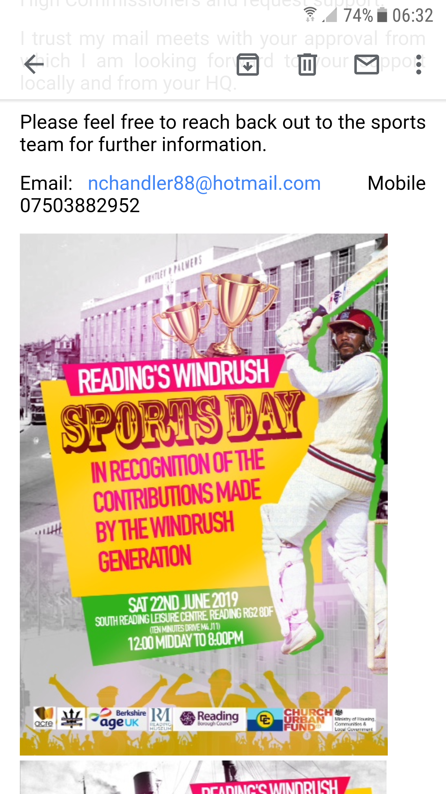22nd June: Reading's Windrush Sports Day