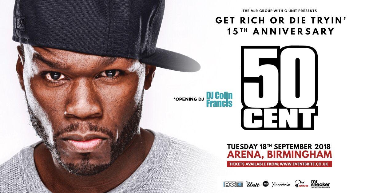 Hip Hop Superstar 50 Cent celebrates the 15th Anniversary of his debut album Get Rich Or Die Tryin’ with a 3 date arena tour of the UK in September.