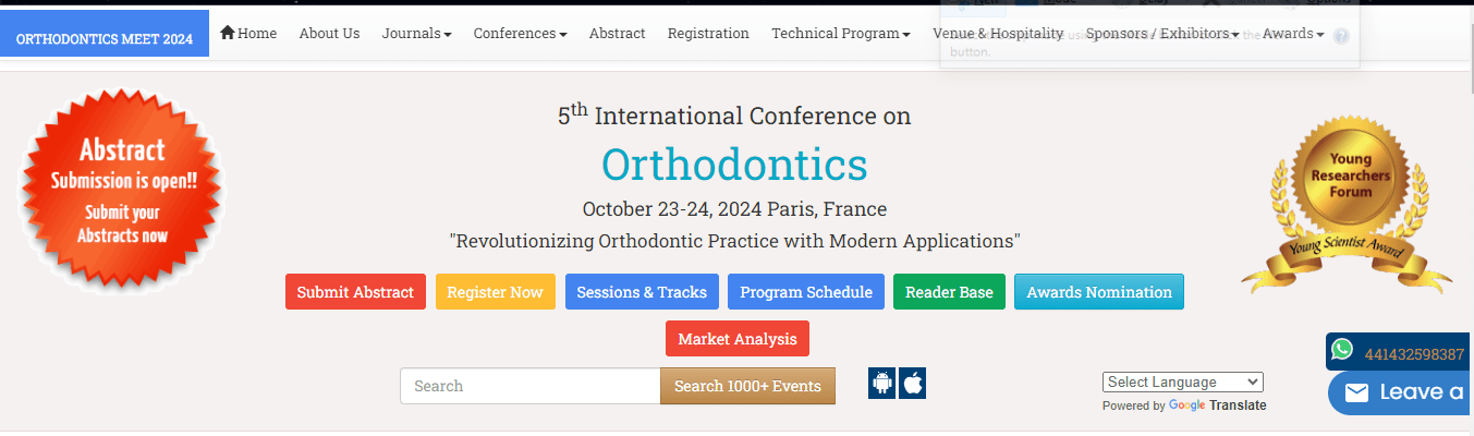 “We Cordially welcome you to the official website of the “5th International Conference on Orthodontics”, scheduled for October 23-24, 2024, in the dynamic locale of Paris, France. This year, we are excited to introduce the theme “Revolutionizing Orthodontic Practice with Modern Applications”, a showcase of innovative ideas, advanced techniques, and strategies that are poised to revolutionize the Orthodontic practice.