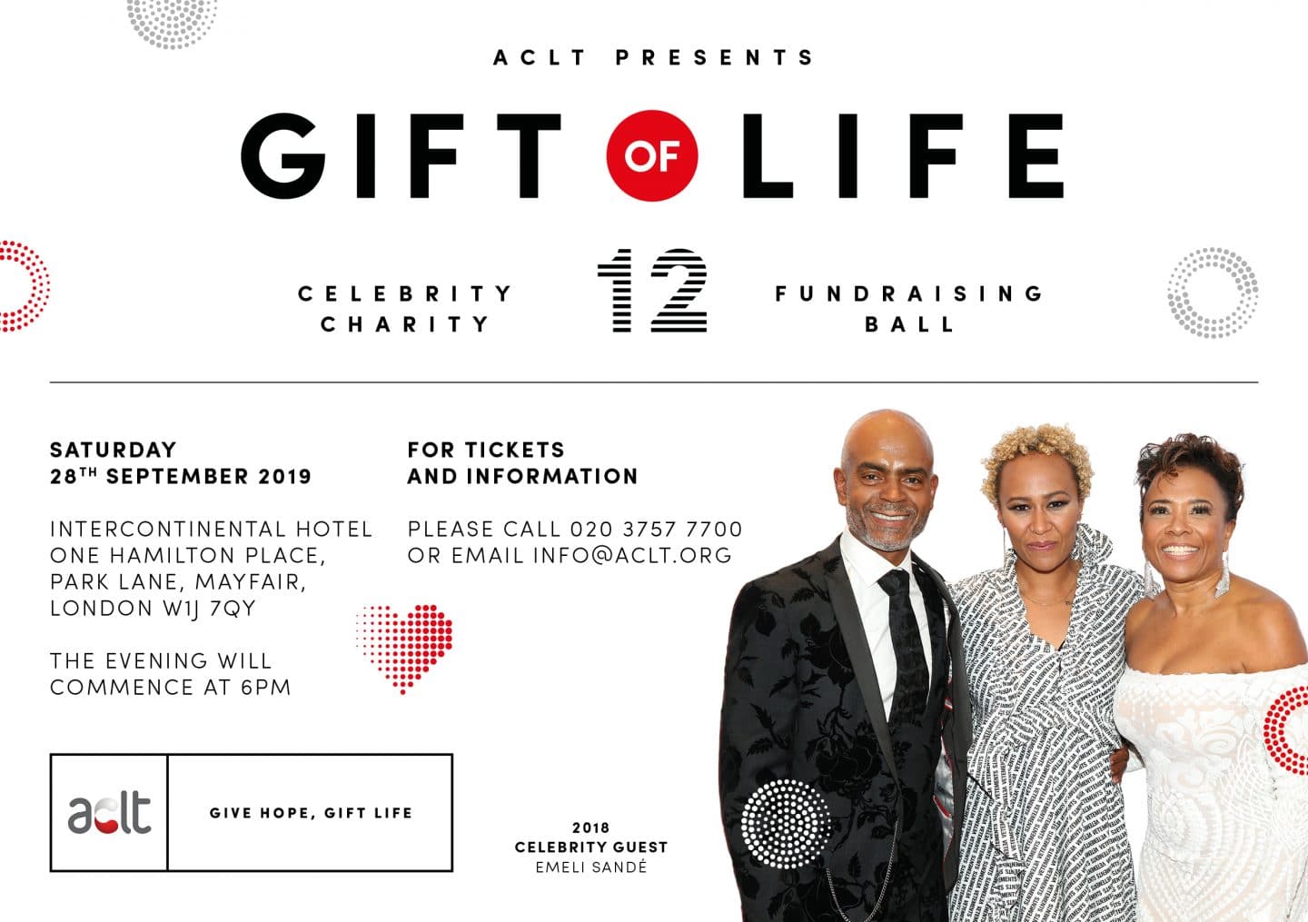 On Saturday 28thSeptember 2019, leading blood cancer charity ACLT will host the 12thedition of their celebrity attended fundraising event, the ‘ACLT Gift of Life Celebrity Fundraising Ball’.