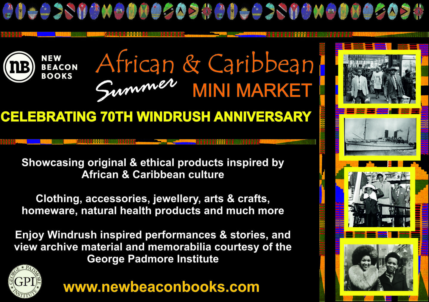 Our Summer market will celebrate the 70th anniversary of the Windrush with performances, stories and an open viewing of archive material from that time period courtesy of the GPI.