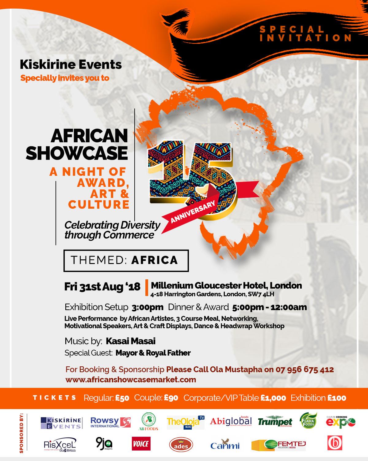 I am writing to invite you to sponsor/join/exhibit/visit in one of the fastest growing events to take place in London. Africanshowcase takes place on Saturday 31st August 2018