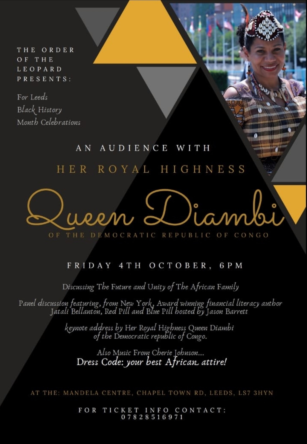 Black history month celebration with live panel discussion, live music and Keynote address by HRH Queen Diambi