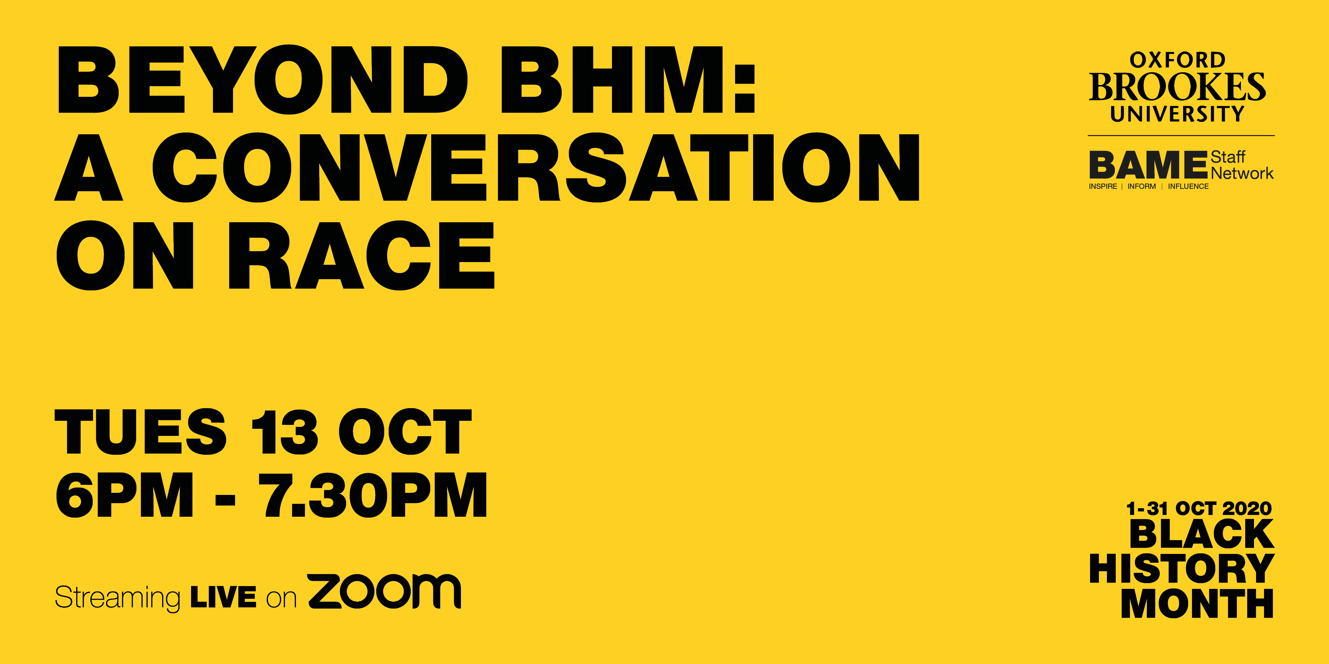 Beyond Black History month aims to bridge the gap of conceptual ideas on diversifying Oxford Brookes University to providing real and definitive methods of creating actions on the following topics discussed. Students and staff are joined by Pro Vice-Chancellor of Student and Staff Experience, Prof. Anne-Marie Kilday and BAME Staff Network director, Lydiah Igweh alongside a panel of student and staff reprentatives which include: