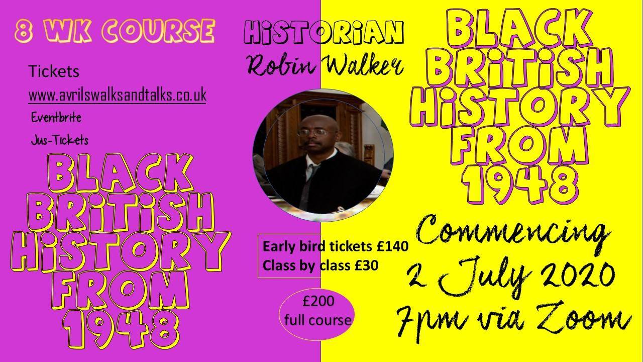 Robin Walker ‘The Black History Man’ will lead a powerful short course on Black British History. All the sessions are inspiring multimedia presentations. The course traces Black British History from 1948 till now.
