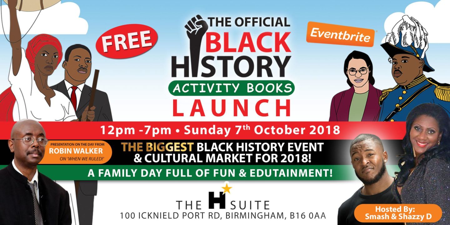 The Official Black History Activity Book Launch will be apart of our very own black history event and cultural market. This is our way of giving back to our community, as well as creating more awareness of the books and of our rich history and culture, not only with our contributions towards society and civilisation in history but also with the history we are currently creating in Birmingham and the UK today. The day will be full of education, performances and fun. Be sure to get your free ticket and come and learn about our History and celebrate with us.