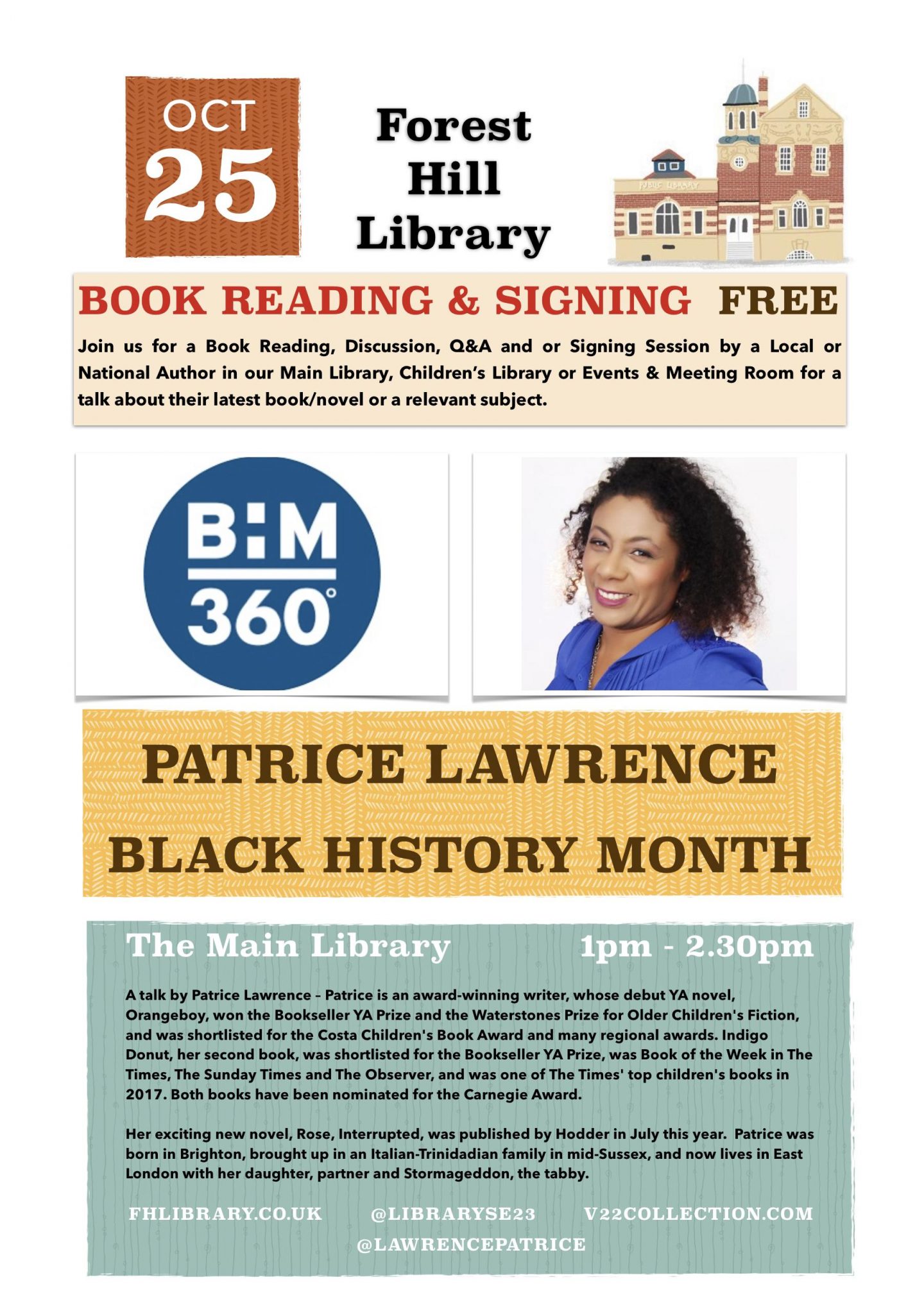 BLACK HISTORY MONTH – PATRICE LAWRENCE – BOOK READING & SIGNING