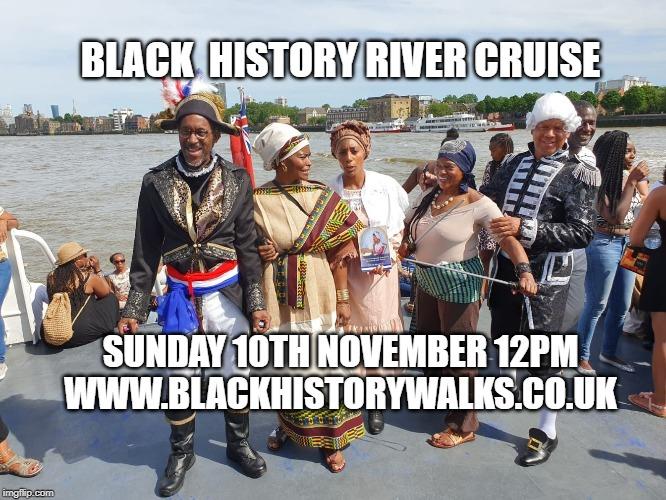 A three-hour cruise along the Thames from Temple to Vauxhall to Greenwich and back highlighting the hidden African/Caribbean history on display, which in some areas goes back 3500 years.. Video here https://www.youtube.com/watch?v=JCIMcpxJSyw