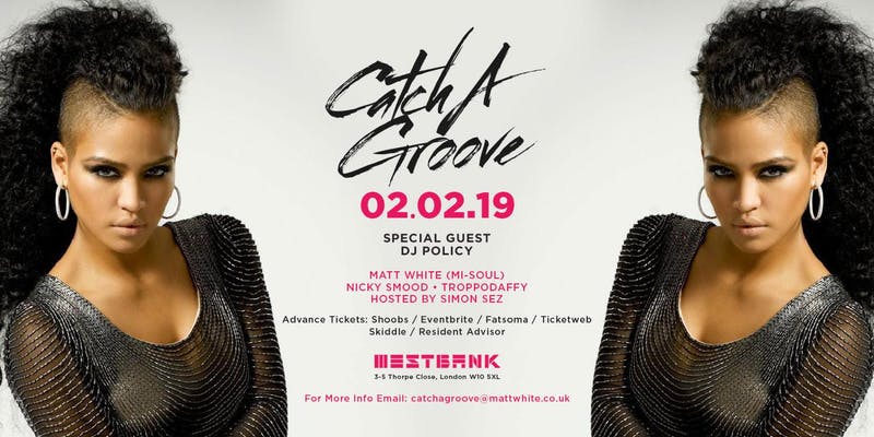 Catch A Groove returns for another of it’s incredible throwback parties at Westbank Gallery, Ladbroke Grove (10 mins from Marble Arch). Joining Matt White (Mi-Soul/Massive TV), Nicky Smood and Troppodaffy will be Kisstory and Ocean Beach Ibiza DJ Policy. Famed for his incredibly diverse DJ sets that take you on a journey from the 00’s right through to the 80’s across every genre off Urban, Rap and Dance music. For a night of stunning classics, good vibes and beautiful people join the Catch A Groove family for the finest in R&B, UKG, New Jack Swing, Bashment, Rap, Hip Hop Soul, Garage, Ragga, Neo Soul and other party favourites.