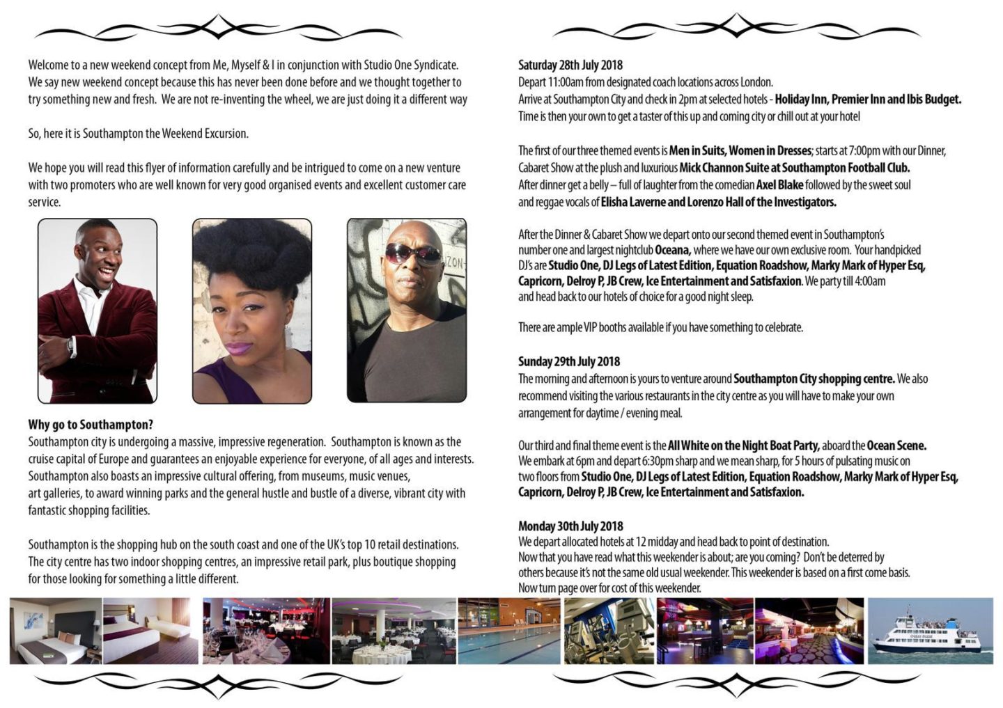 Come Go With Me is the new unique weekend excursion weekender too one of the most talked about cities in the UK – Southampton. The weekend starts with coaches leaving all over from London to Southampton Town centre where you have a choice of three different hotels / packages to choose from. Even though there’s three different hotels the packages are the same.