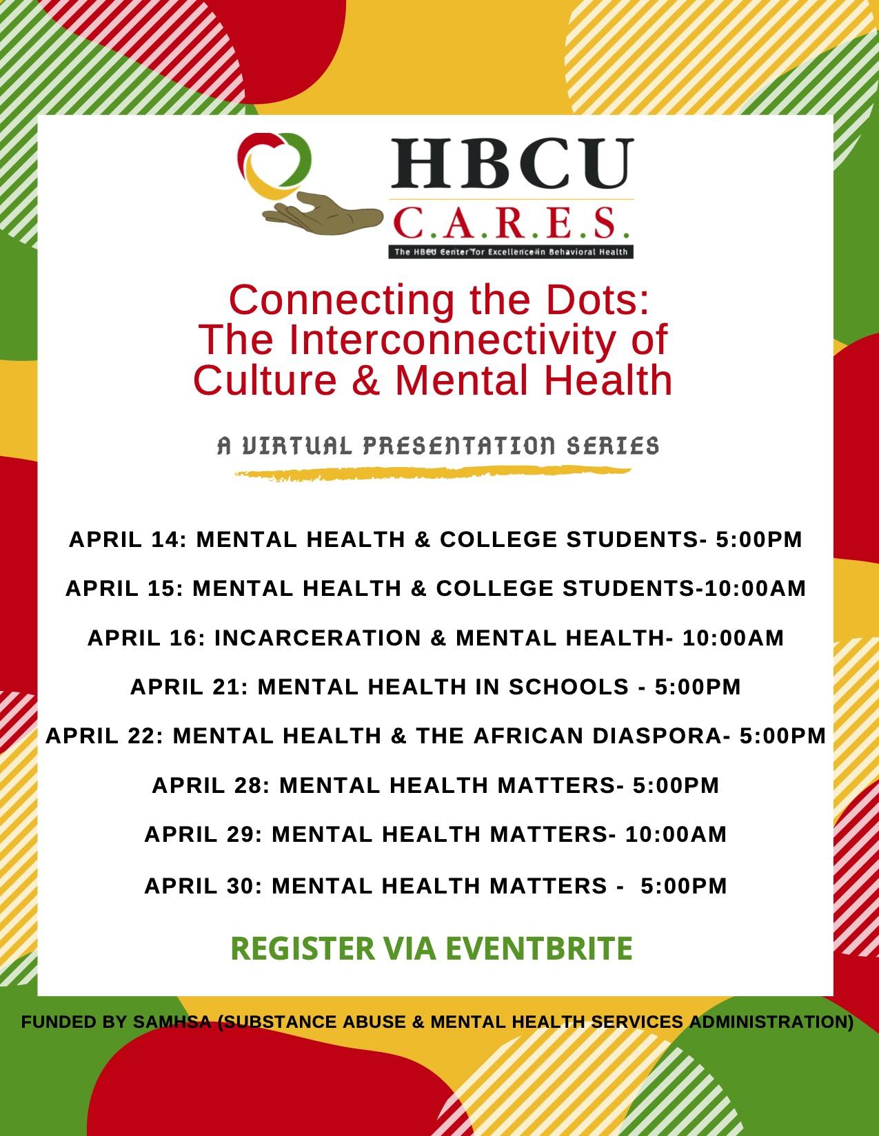 This is a virtual presentation series that explores mental health and its impact in various communities.