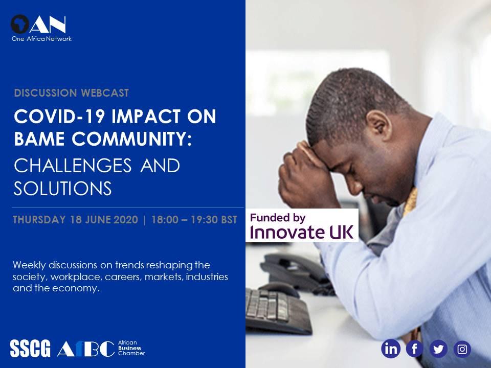 Join One Africa Network (OAN) live discussion webcast on COVID-19 Impact on BAME Community: Challenges and Solutions on Thursday 18 June 2020 at 18:00 BST to learn and hear from our panel of experts as they share their thoughts, experiences, perspectives and solutions.