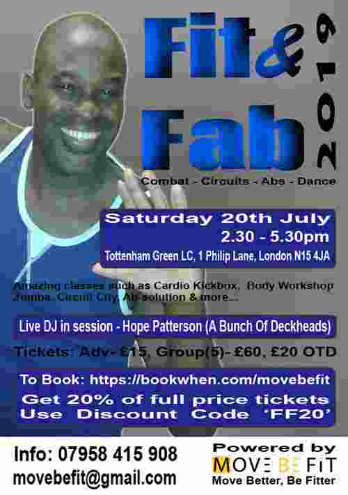 Move Be Fit will be hosting their Fit & Fab 2019 event on the 20th July and hope that you can join us for 3 hours of fun fitness.
