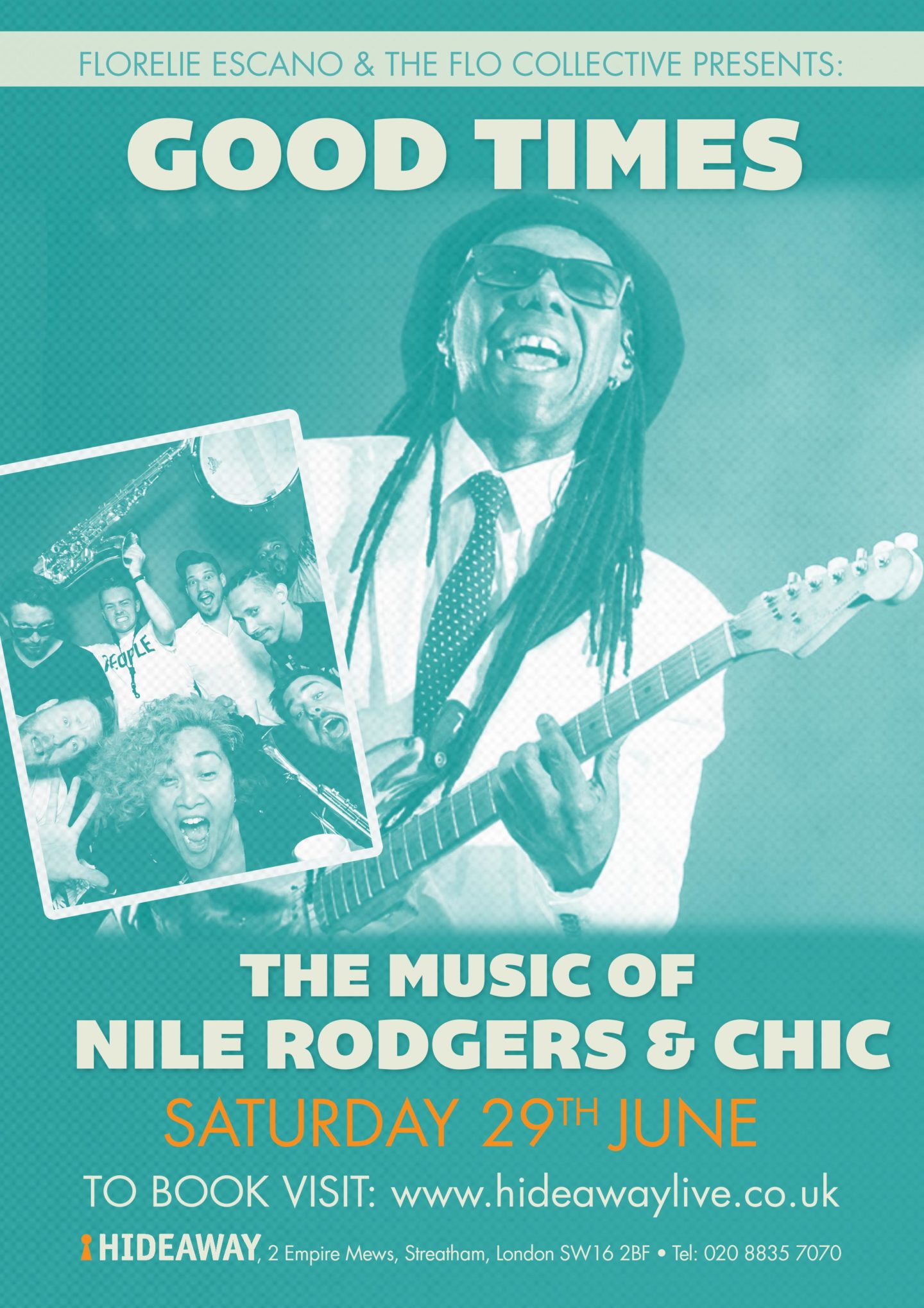 Florelie Escano leads her live band, The Flo Collective, back to Hideaway for another celebration of the music of Nile Rodgers- arguably the most groove-conscious, gold plated, one man hit factory the music industry has ever seen. This show sold out in December and is back through public demand! It will sell out quick so get on board!