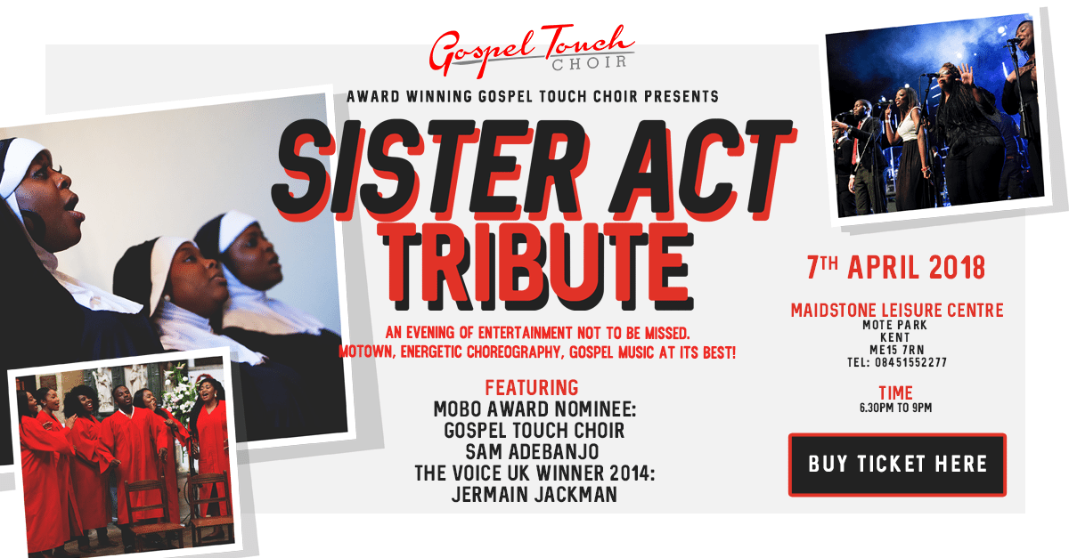 We are delighted to welcome Gospel Touch Choir who will pay tribute to one of the most enjoyable family friendly movie- Sister Act. They will perform the classic best known songs with a full live band at Maidstone Leisure Centre for one night only! From Oh Happy Day, I will follow him, …to Ain’t no Mountain High Enough.