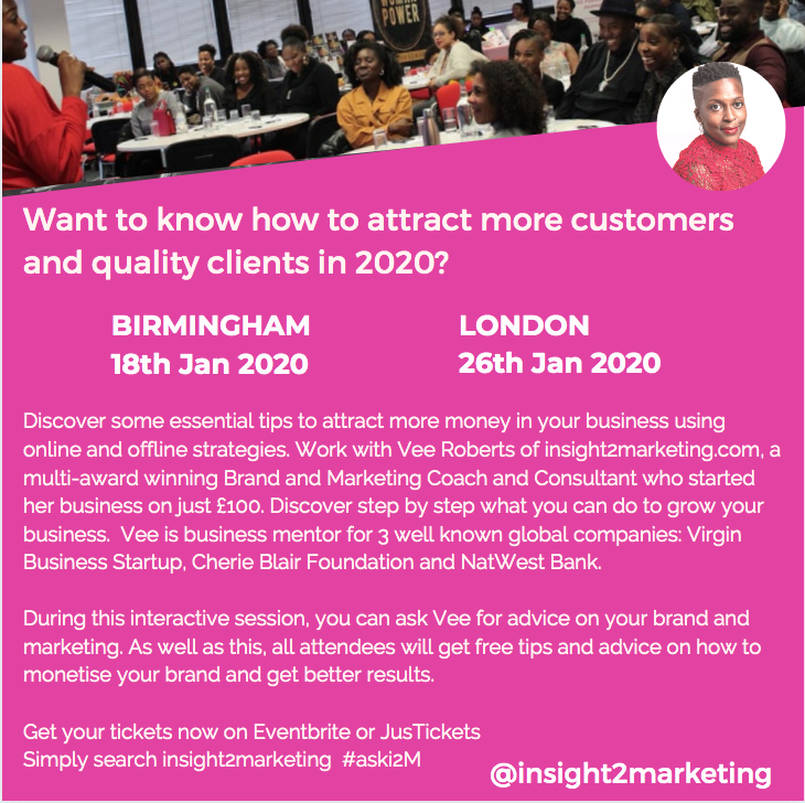 This event is ideal if you want to develop your brand and also improve your marketing tactics. Vee will share with you how she has managed to build a business on £100 and is now a highly sought after speaker and coach globally.
