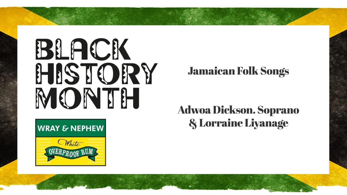 Jamaica has a rich musical heritage spanning a diversity of styles and forms. Throughout the island’s modern history, music has played a significant role in the social, political and economic life of its people. Adwoa’s recital for Black History Month draws from the wealth of Jamaica’s folk music – the music of the Jamaican people which, with its colourful range of forms, reflects the way of life of individuals or entire communities. There are religious songs and secular songs; songs for marriage, birth, death and all rites of passage. There are songs for work and songs for play; songs of upliftment and hope, and songs of derision and despair; songs which tell of small happenings in remote villages and songs which give epic accounts of significant happenings in the island’s history. In all these, the Jamaican folk song gives voice to the heart, soul and experience of the Jamaican people.