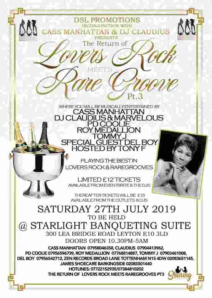 Top DJs as always for your musical pleasure playing the best in old skool Lovers Rock & Rare Groove.