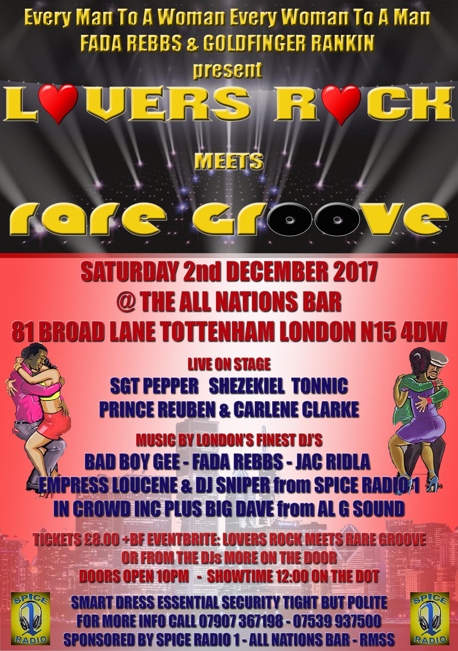 Lovers Rock Meets Rare Groove show and dance. This event promises to be the penultimate clubbing experience for connoisseurs and lovers of british lovers rock reggae and american urban soul from back in the day.
