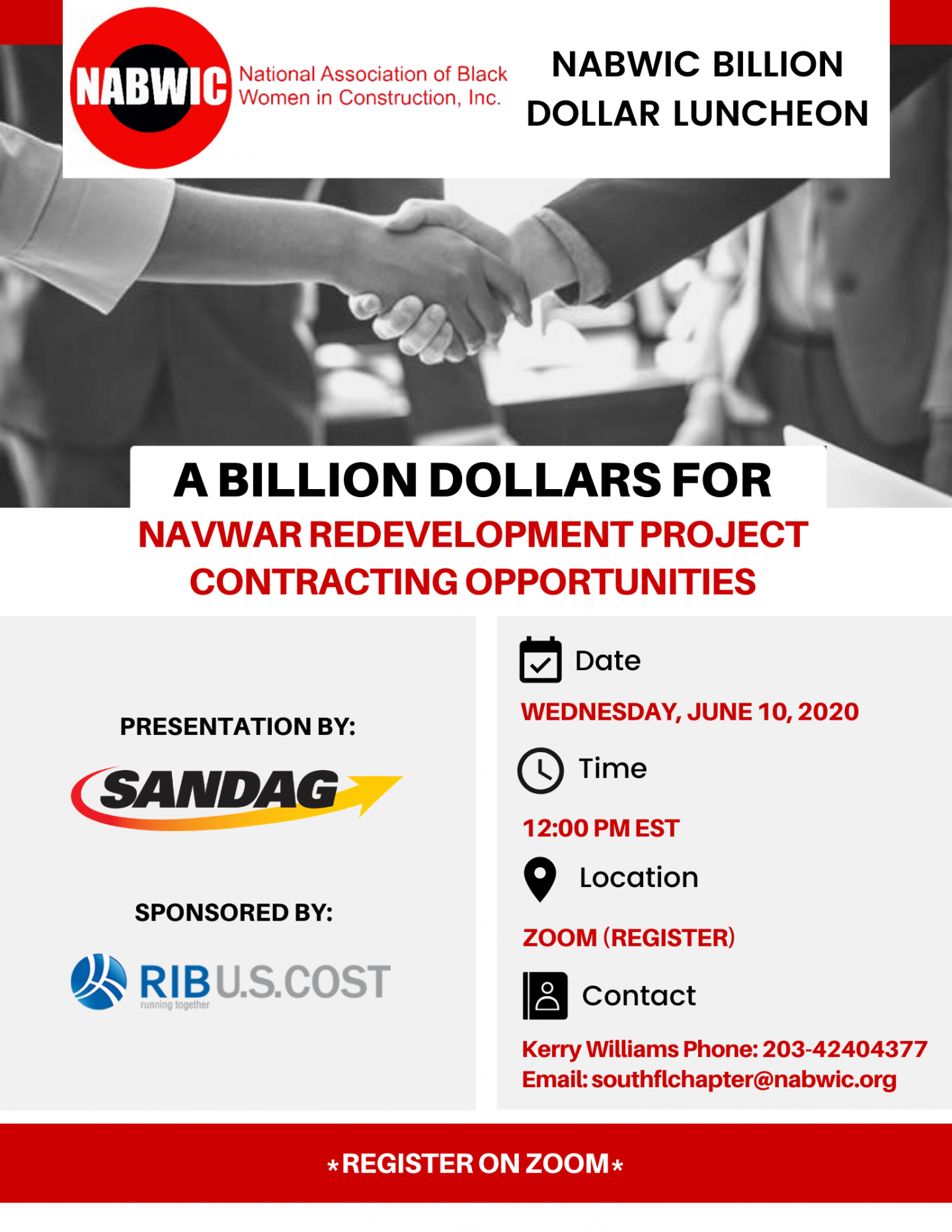 Join NABWIC for it’s monthly Billion Dollar Luncheon. This month the San Diego Association of Government will be presenting a PPP project.