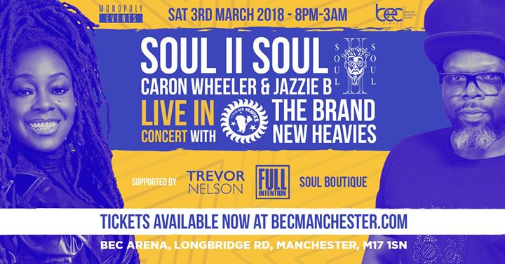 Legendary soul band Soul II Soul will perform live in concert alongside the pioneers of the London acid jazz scene The Brand New Heavies on March 3rd 2018 at the B.E.C Arena Manchester.
