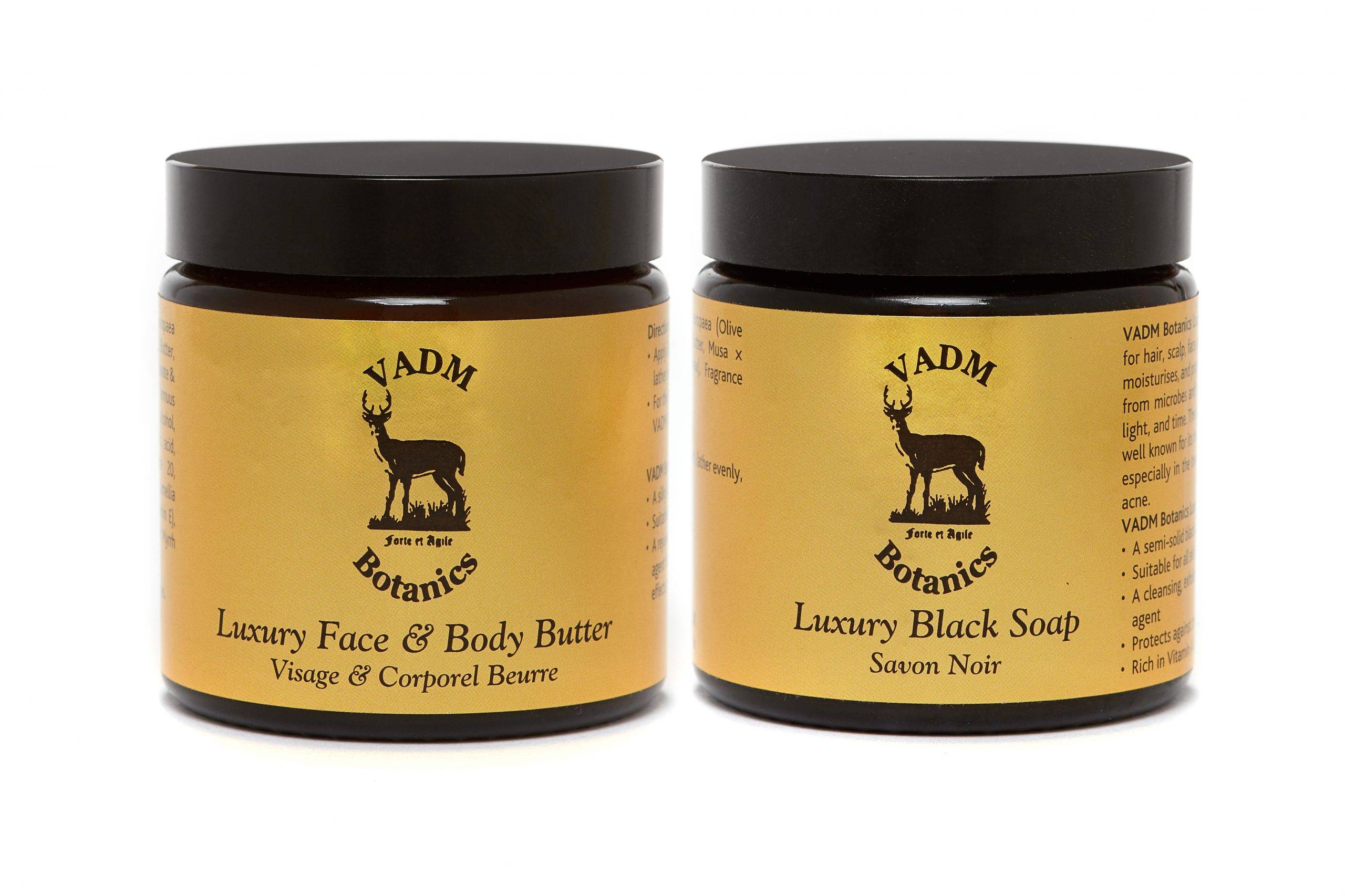 VADM Botanics Luxury Black Soap and Face and Body Butter are made from a special blend of natural sustainably-sourced ingredients specially formulated for the purpose cleansing, nourishing, moisturising, and protecting all types of skin, scalp and hair from microbes and the aging effects the weather, UV light, and time. The soap is rich in vitamins A and E and well known for their healing or dermatological properties; especially in the treatment of dermatitis, eczema and acne. Excellent manufacturing practice ensures that this product is safe to use. Safety certificates are available to be seen on request.