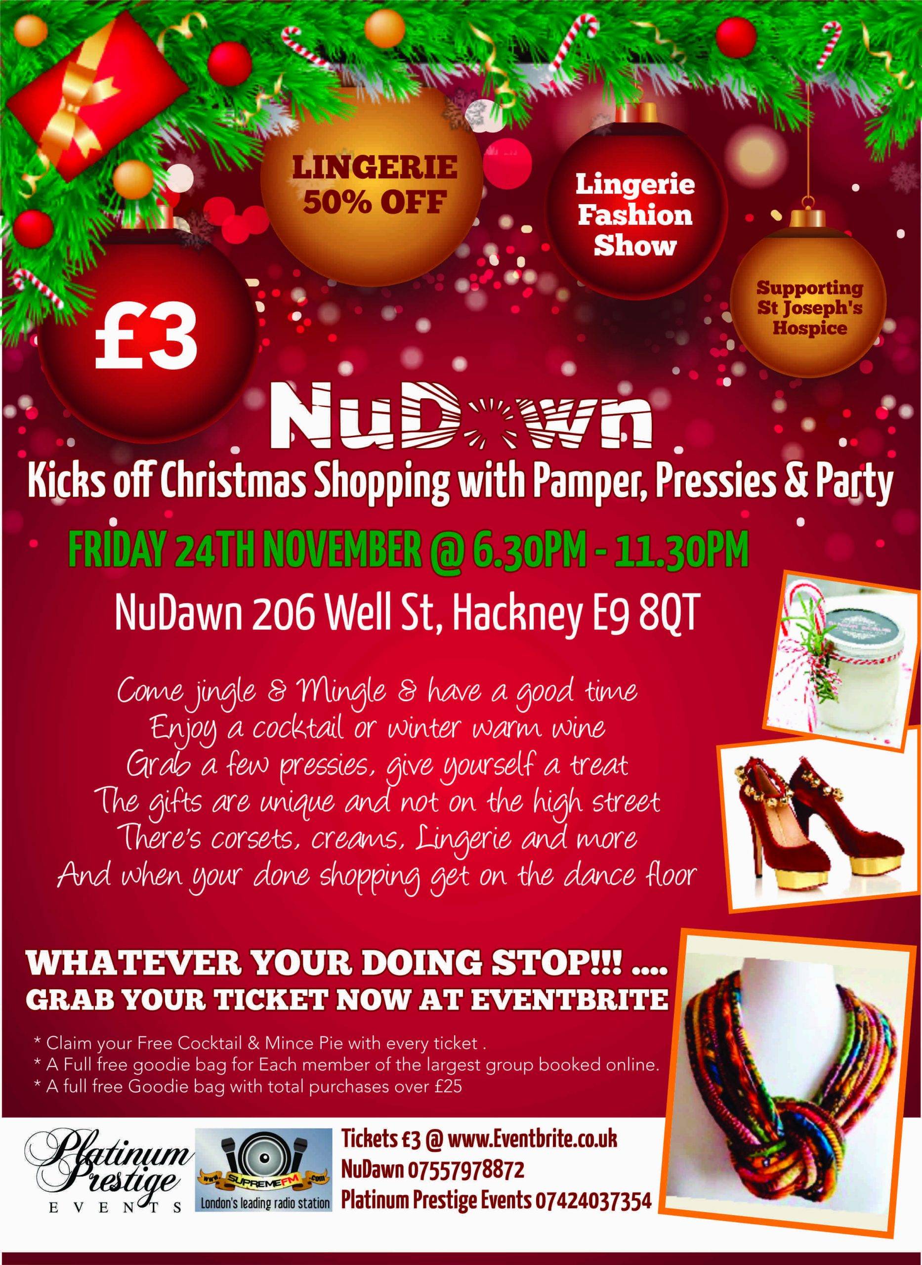 Nudawn Kicks off christmas with a Pamper and shopping Nite befor ending with a cocktail party nite.