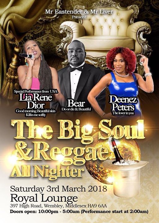 The Big Reggae & Soul All-nighter feating live from the ?? USA … Lia Rene Dior, Bear and from the Uk ?? Deenesz Peters