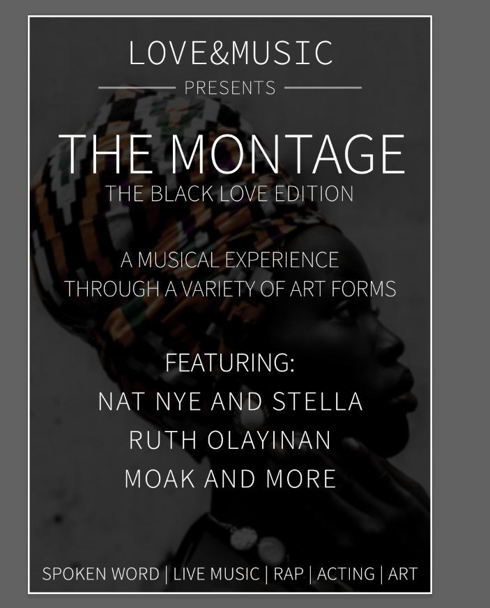 The Montage is a musical experience bringing together the beauty and storytelling natures of a variety of art forms into one night. Preluded with a full five-piece band, our next showcase will host a number of art forms exploring the topic of ‘Black Love’.