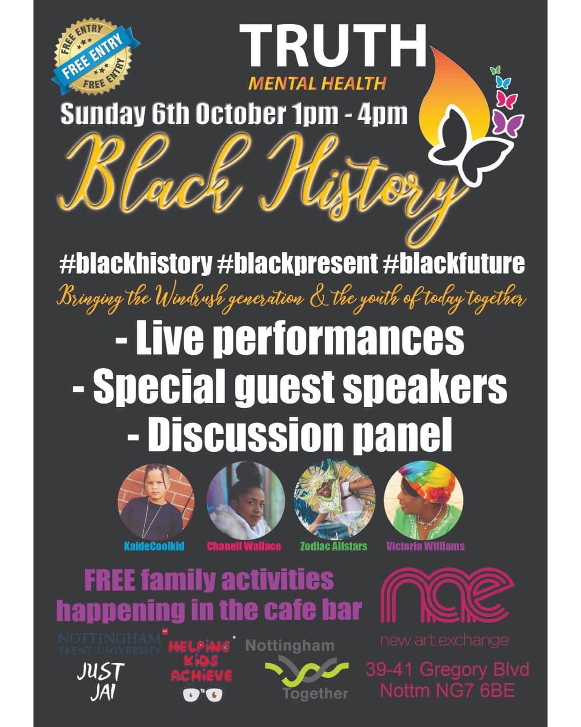 Truth mental health is working in collaboration with Trent university, Nottingham together and the new art exchange in bringing in the black community together to celebrate black history.
