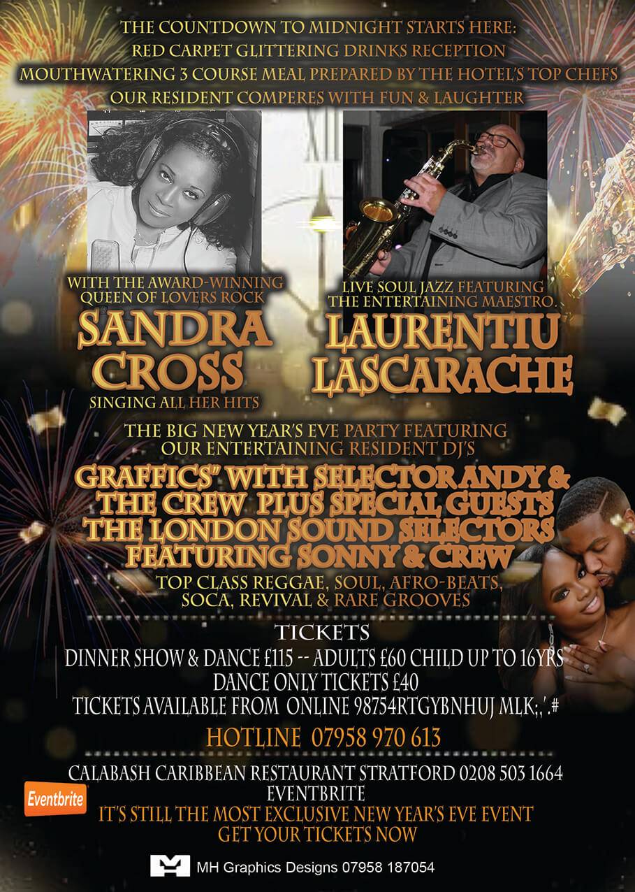 Black Tie Champagne Reception Dinner Show & Dance Special Guest Artiste Reggae Singer Sandra Cross & Saxophonist Laurentiu Lascarache,
