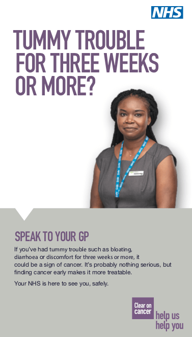 People with persistent tummy troubles (for more than three weeks) including diarrhoea, bloating or discomfort in the tummy area, are being urged to get checked…
