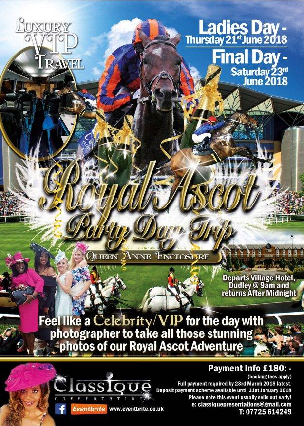 Come and join “Classique Presentations Royal Ascot VIP Party Day Trip’ on one of the most famous racecourses in the world on the most prestigious…