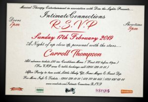 Intimate Connections R.S.V.P Musical Therapy Entertainment in association with Dim the Lights invites you to "Intimate Connections R.S.V.P"; an up close and personal night with…
