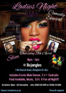 Ladies this Thursday night wine and dine and live it up at Bojangles in Chingford! Get into your l.b.d.s, slip on your highest heels and…