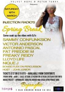 Find out more »Injection Radio’s Spring Break – A DJ Night in Chingford
