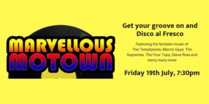 Get your groove on and Disco al Fresco Featuring the fantastic music of The Temptations, Marvin Gaye, The Supremes, The Four Tops, Diana Ross and…