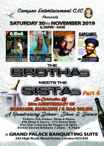 Campro Entertainment C.I.C Presents The Brothas Meets The Sistas Part 4 In Celebration of 20th Anniversary and Re-Launch of Gargamel Magazine / G MaG Online A Fundraising…