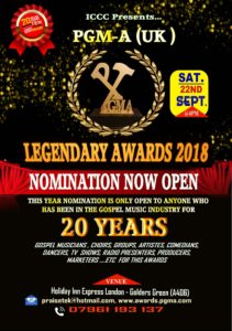 LEGENDARY AWARD NIGHT 2018  This year to the glory of God, Praisetek Ministries will be Celebrating 20 years and PGM-Awards will also be…