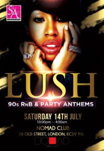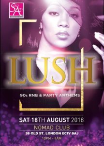 ☆ ★ SAT 18th August 2018 ★ ☆ LUSH 90's RnB & PARTY ANTHEMS ★ ☆NOMAD CLUB LONDON58 Old Street, London EC1V 8AJ RnB, Soulful…