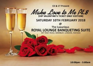 Make Love To Me Part 8 - The Valentine Edition @ The Royal Lounge Banqueting Suite / 397 High Road / London HA9 6AA music…