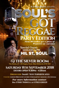 SOUL'S GOT REGGAE - Party Edition feat. HIL ST, SOUL Date:Â Saturday 8th September Venue:Â The Arena Stourbridge Time:Â 9:30pm to 4:30am Address:Â The Silver Room, 27-29 Hayley Road,…