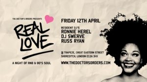 REAL LOVE A Night of RnB & 80’s Soul 9.30pm-3.30am Friday 12th April Trapeze Basement Club, Shoreditch £5 Earlybird || £7 Advance || £10 Door Tickets guarantee…